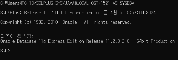 SQLPLUS SYS/JAVA@LOCALHOST:1521 AS SYSDBA
