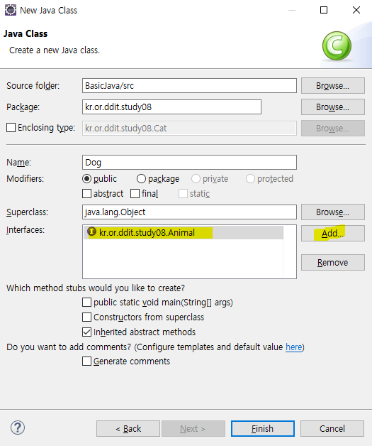 ** 직접입력하는 방법도 있지만 생성 시에 interface에 add로 추가하는 방법도 존재한다