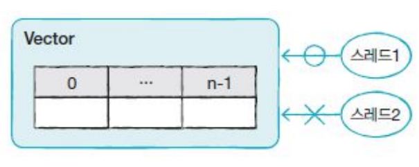 차이점은 동기화된 메소드로 구성되어있기 때문에 멀티 스레드가 동시에 실행시킬 수 없음 thread safe함