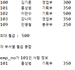 // 기존에 있던 맵을 삭제한 후에 급여값을 sum의 remove값에 저장 (sum의 dept 키워드의 value 값은 급여합계)