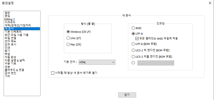 notepad 설정