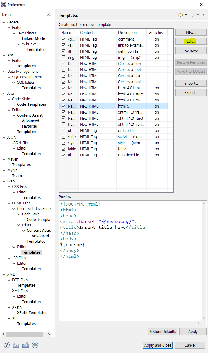 템플릿 설정