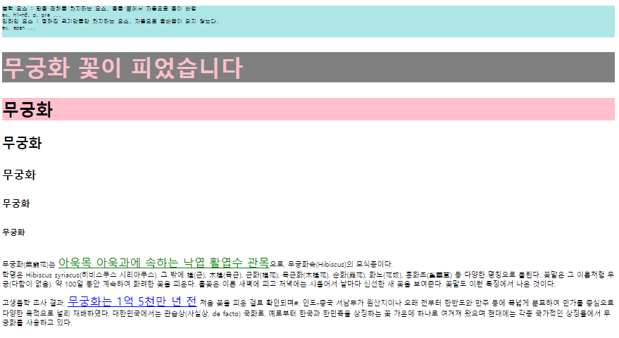 <h1>무궁화 꽃이 피었습니다</h1>