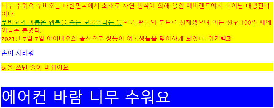 br을 쓰면 줄이 바뀌어요