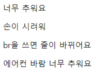 <p>br을 쓰면 줄이 바뀌어요 </p>