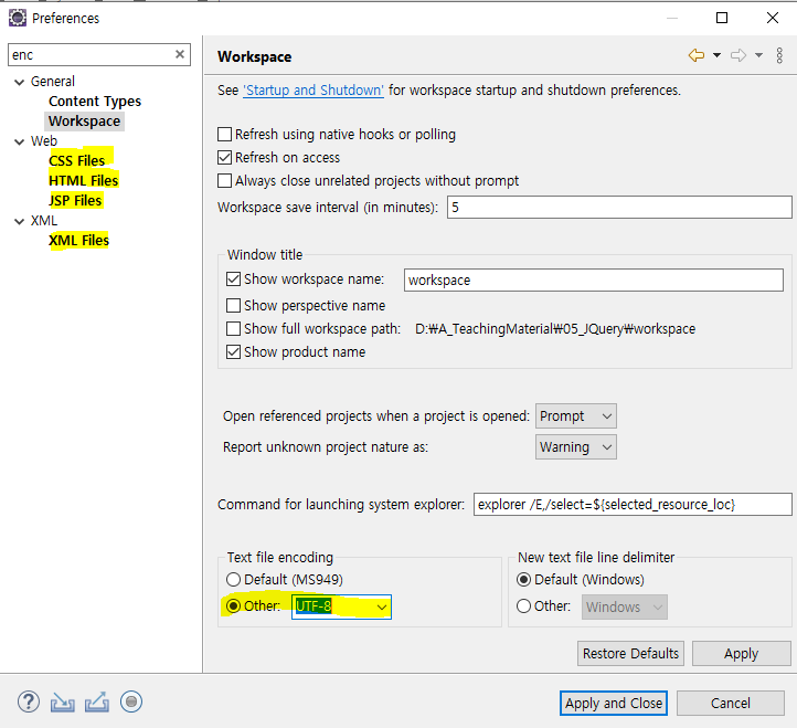 이클립스 설정 (서버)