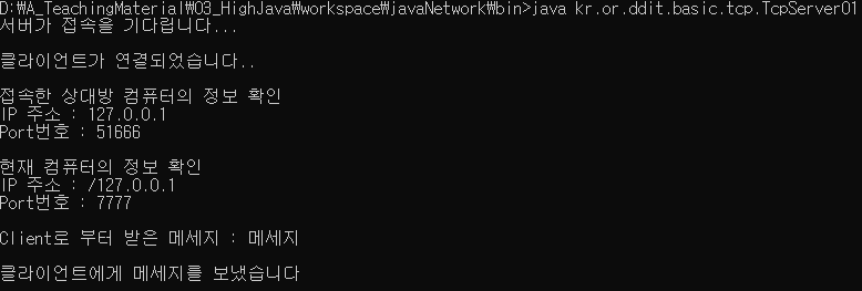 System.out.println("클라이언트에게 메세지를 보냈습니다");