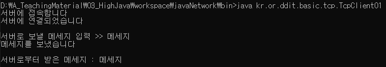 System.out.print("서버로 보낼 메세지 입력 >> ");