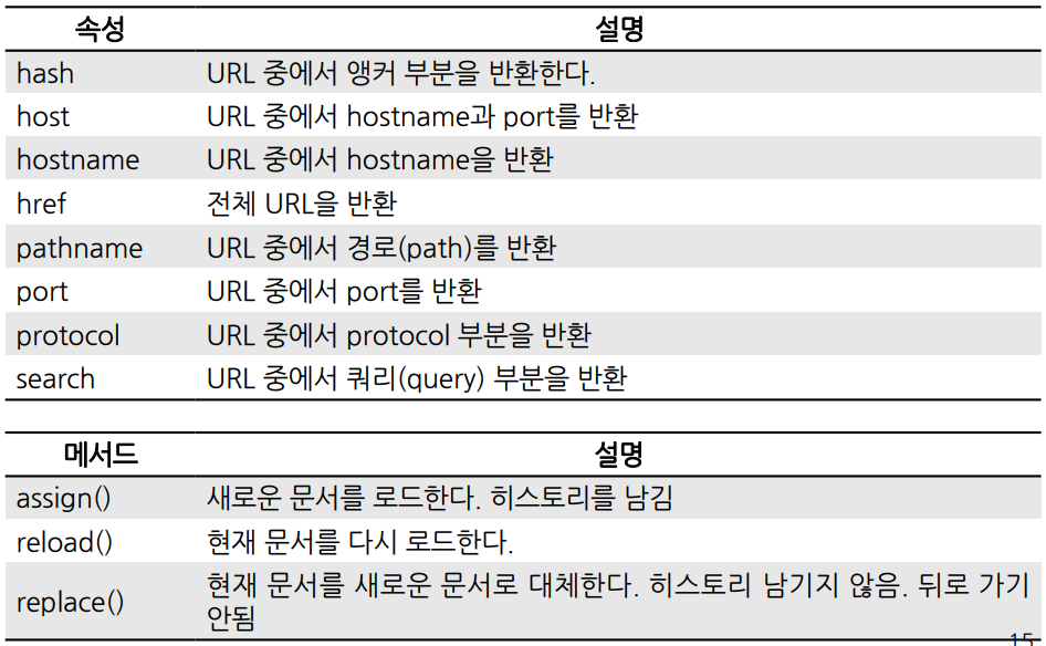 <h3>location객체 <br>