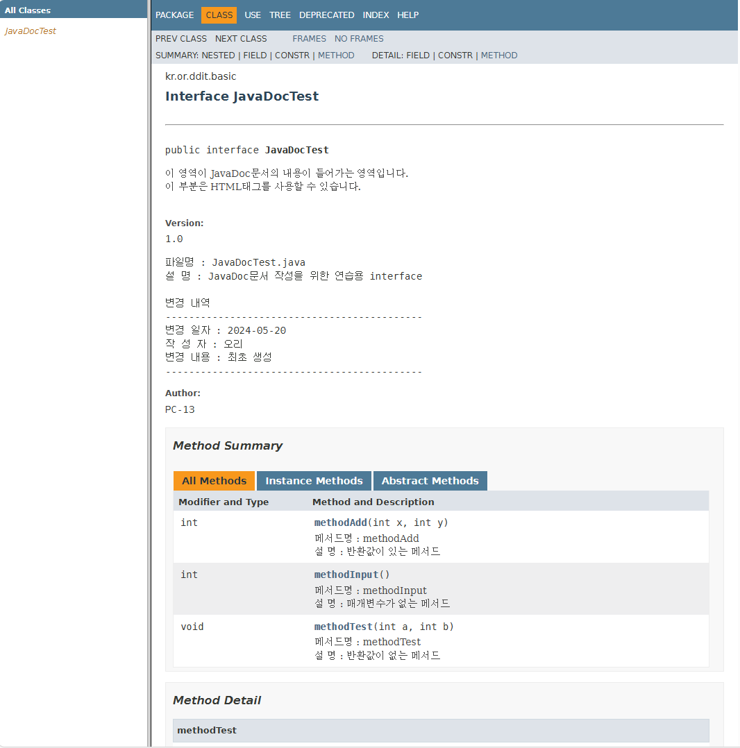 javaDoc문서 생성 결과값