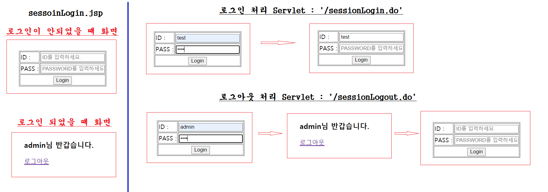 - 로그인 처리 서블릿 (sessionLogin.do)