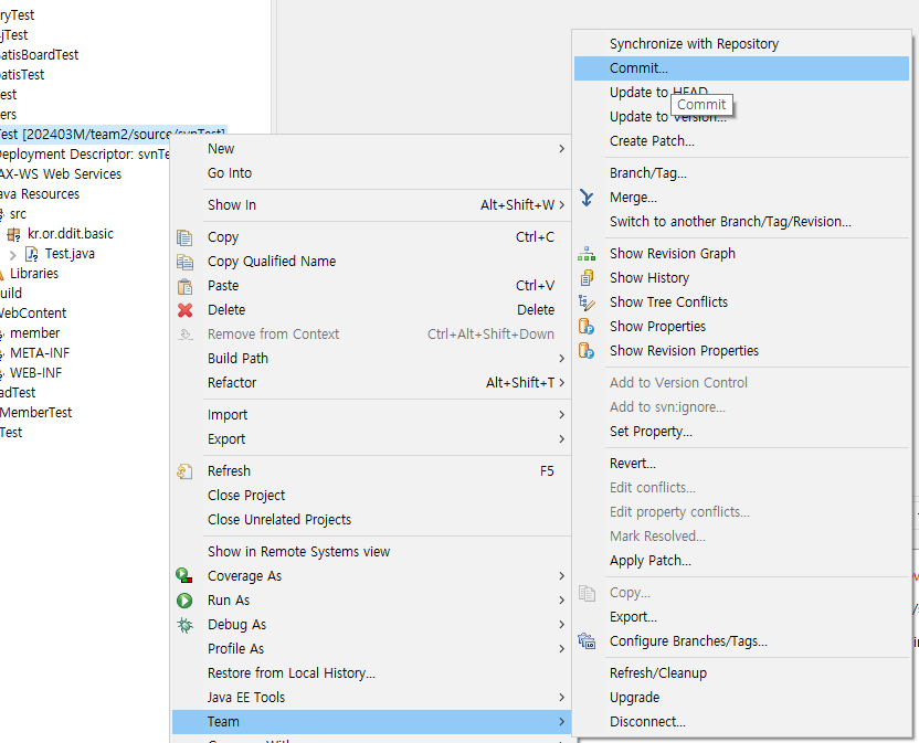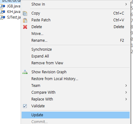 따로 커밋할 것을 우클릭하여 commit을 하여 커밋하며