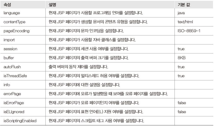 JSP페이지를 어떻게 처리할 것인지를 설정하는 태그