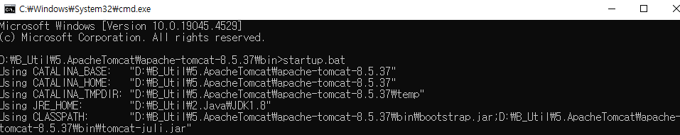 tomcat>bin폴더에서 cmd 창 실행후