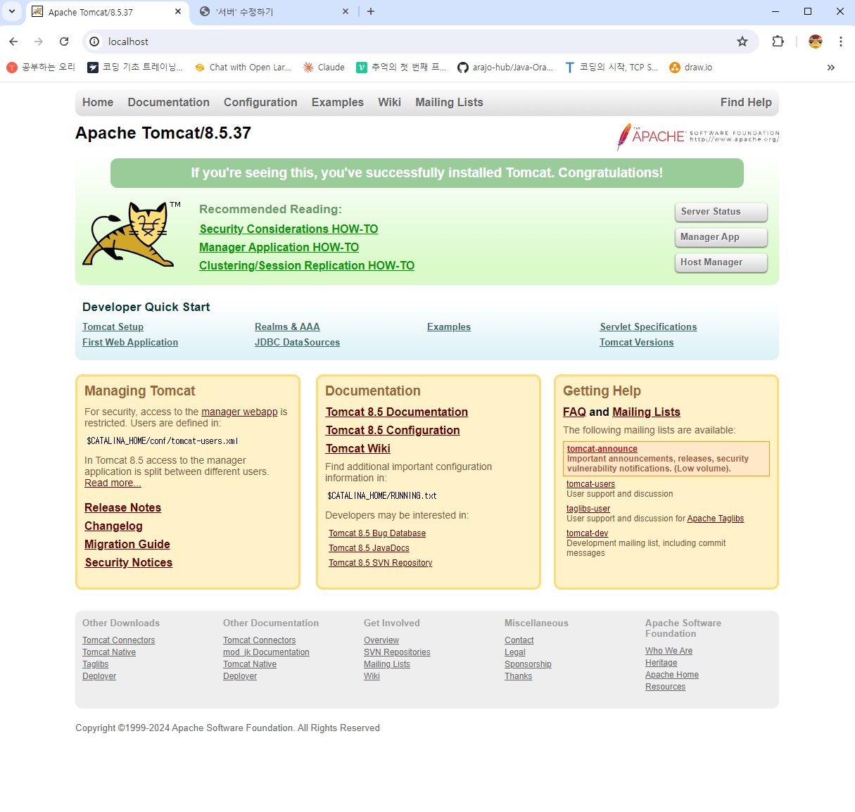 해당이 잘 실행이된다면 localhost를 치면 해당이 나온다