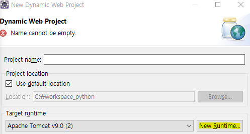 1.8 jre를 선택해 설치하여 생성