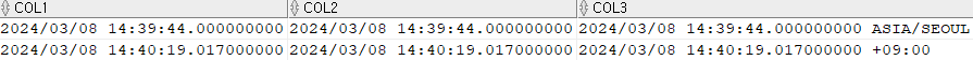 컬럼명 TIMESTAMP 시간대 정보 저장하지 않음