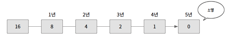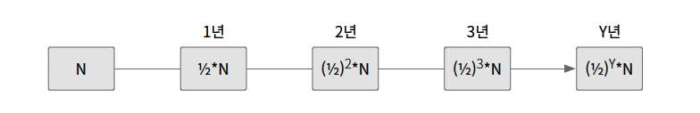 초기 박테리아 세포 개수가 N일 때 해마다 세포 개수가 이전 세포 개수의 반으로 준다면 언제 모든 박테리아가 죽을지 계산하기