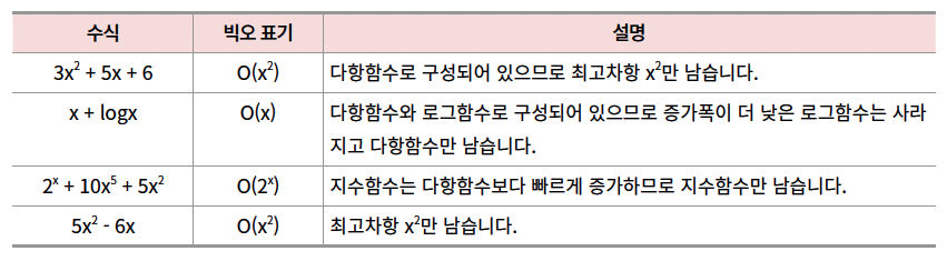 | 시간 복잡도 | 설명 |