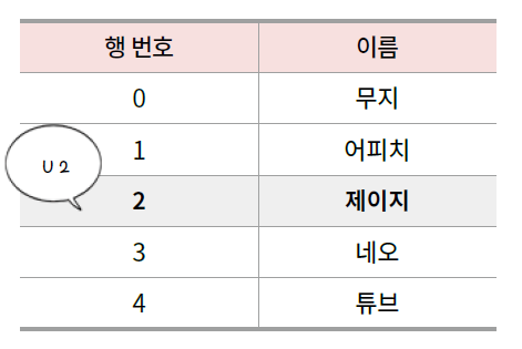 “U 2”를 수행하면 현재 선택한 행은 2행이 됩니다.