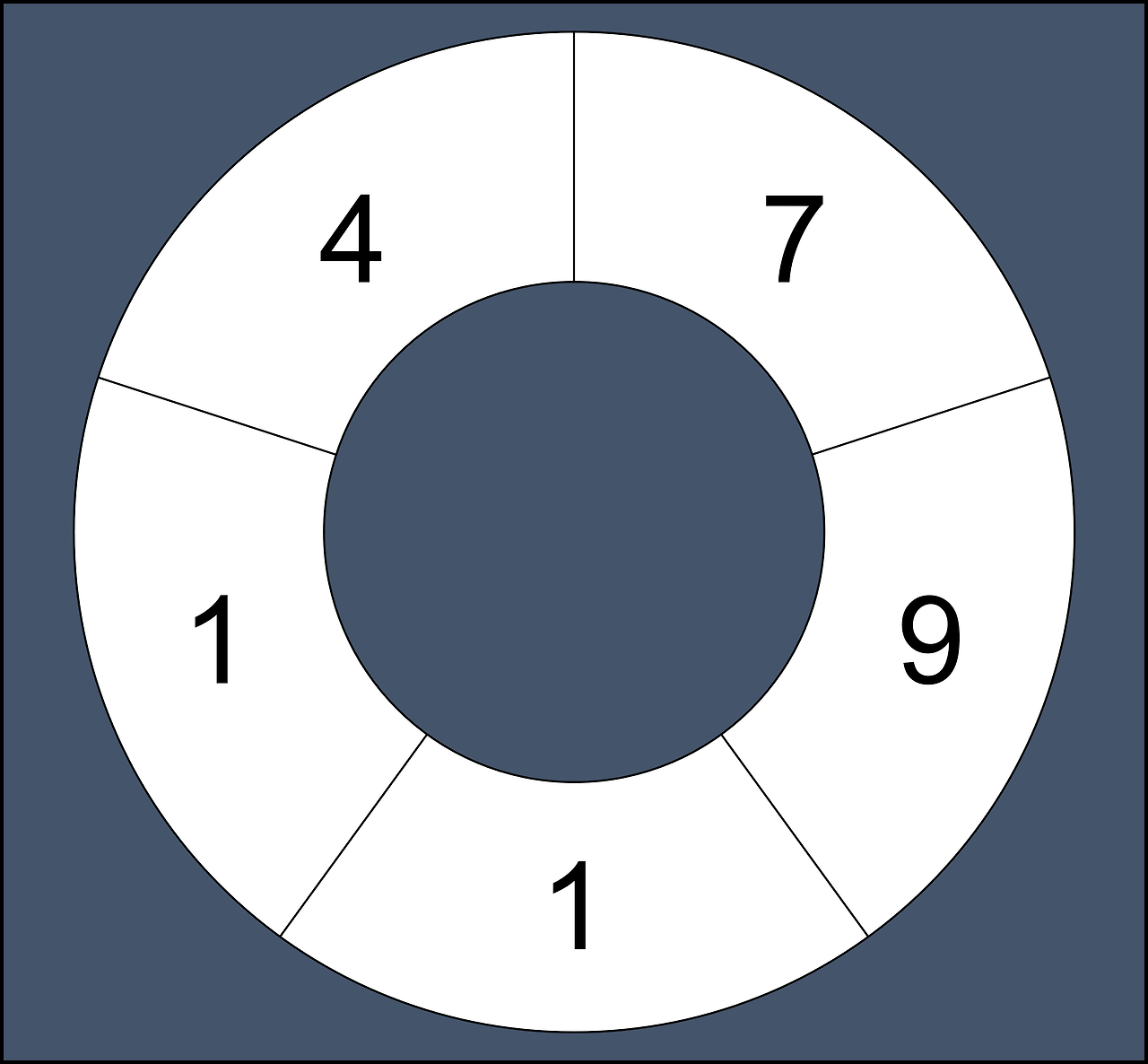 철호는 수열을 가지고 놀기 좋아합니다. 어느 날 철호는 어떤 자연수로 이루어진 원형 수열의 연속하는 부분 수열의 합으로 만들 수 있는 수가 모두 몇 가지인지 알아보고 싶어졌습니다. 원형 수열이란 일반적인 수열에서 처음과 끝이 연결된 형태의 수열을 말합니다. 예를 들어 수열 [7, 9, 1, 1, 4] 로 원형 수열을 만들면 다음과 같습니다.