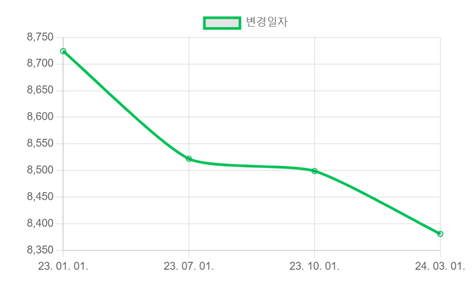 이러한 데이터를 보내 javascript에서 차트로 데이터를 보내 일자마다 단가 변동을 보여주는 그래프를 만들었다