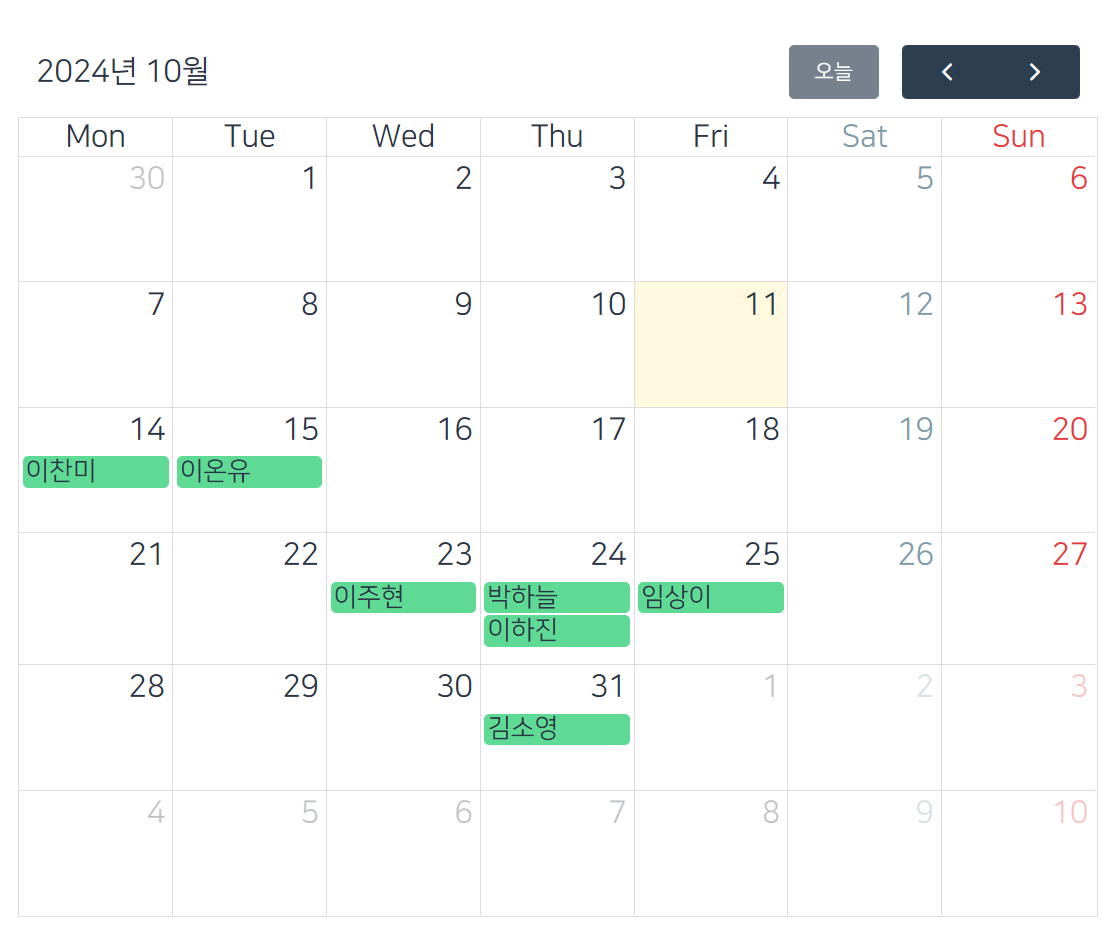 today: '오늘' // today 버튼 텍스트를 "오늘"로 변경