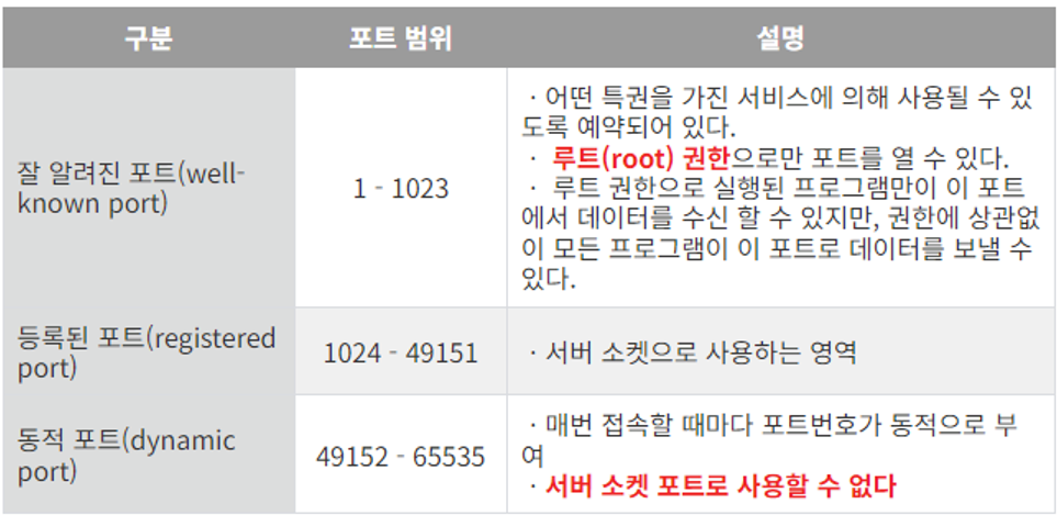 서버 소켓 포트로 사용할 수 없는데, 예시로 서버를 해당 포트로 열려고 하였을 때 다른 사람이 파일 업로드와 같이 포트를 사용하는 작업을 수행하였을 때 포트 번호가 겹칠 수도 있어 문제가 생길 수 있다. 그러므로 서버 소켓은 등록된 포트를 통해 사용해야한다.