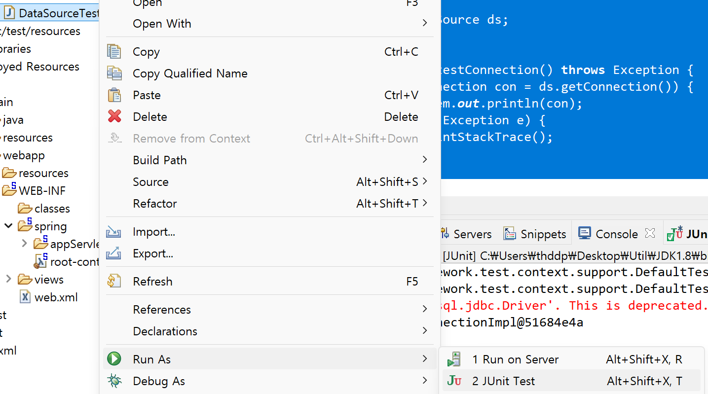 이렇게 연결 한 후 해당 클래스에서 연결이 제대로 되었는지