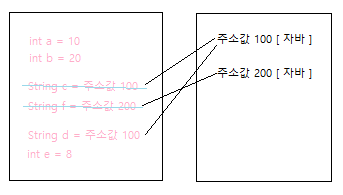 // 4. stack저장후 값은 힙에 주소100에 참조